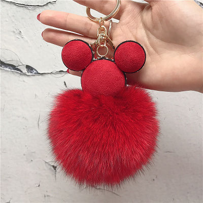 Hand Made Cute Bear Mink Fur Fluffy Pendant Key Chain Charms