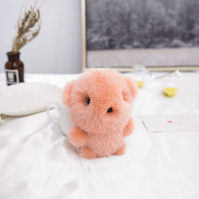 Hand Made Cute Puppy Mink Fur Fluffy Pendant Key Chain Charms