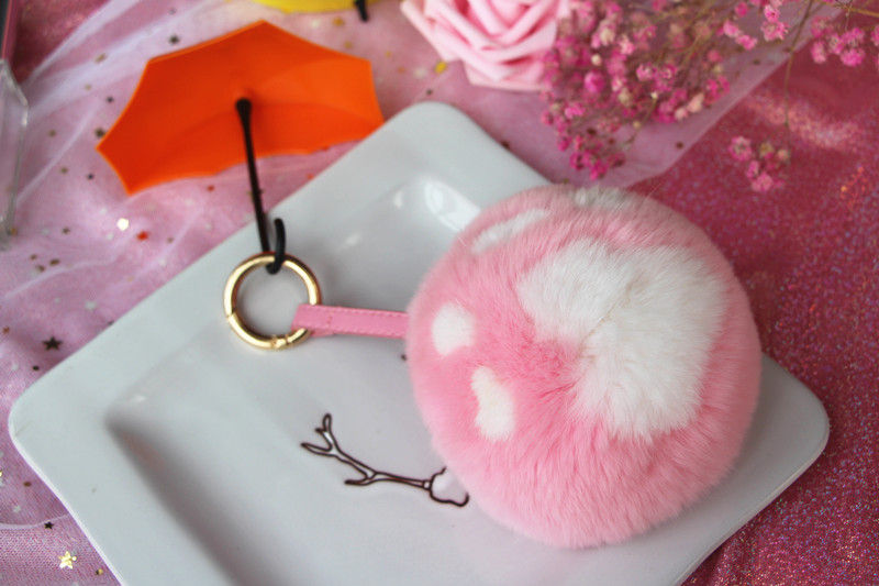 Hand Made Cute Lamp Mink Fur Fluffy Pendant Key Chain Charms