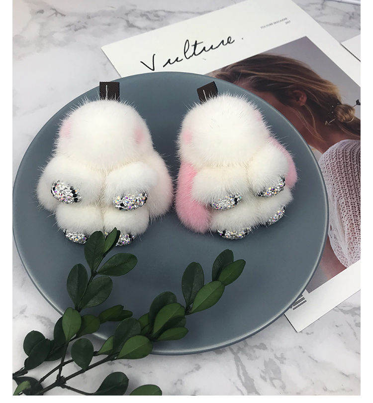 Hand Made Cute Lopunny Mink Fur Fluffy Pendant Key Chain Charms