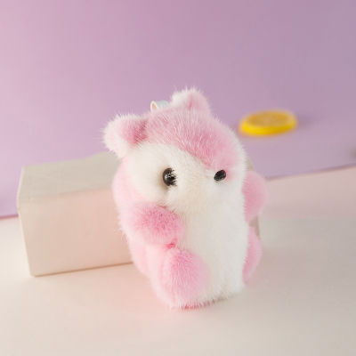 Hand Made Cute Squirrel Mink Fur Fluffy Pendant Key Chain Charms